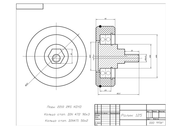 Ролик 125х40 эксцентриковый для башмака кабины OTIS (5т)